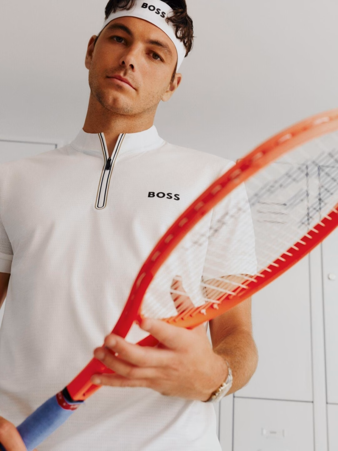 Taylor Fritz, vận động viên tennis người Mỹ, từng xếp hạng đơn số 4 toàn cầu vào năm 2024, là một trong hai gương mặt đại diện cho chiến dịch này. Trong bộ ảnh mới, Taylor Fritz xuất hiện với trang phục thể thao tông đen – trắng đơn giản, tôn lên vẻ mạnh mẽ và nam tính. Bộ trang phục này được thiết kế để mang lại sự thoải mái và hiệu suất cao trong suốt quá trình vận động.