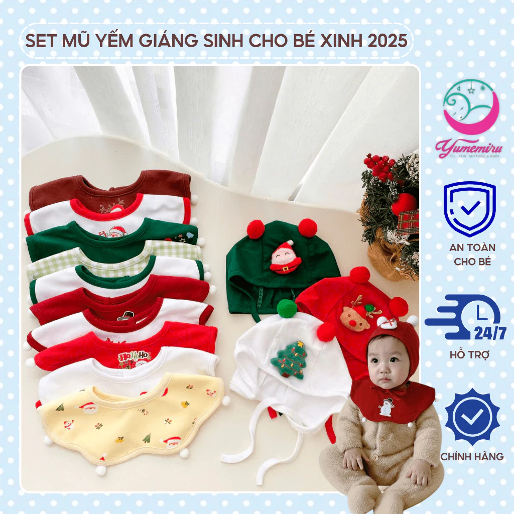 Nếu bạn đang tìm kiếm một set mũ và yếm quàng cổ Giáng Sinh phù hợp cho bé, hãy tham khảo Set mũ và yếm quàng cổ Giáng Sinh Noel cho bé xinh yêu với họa tiết tuần lộc, ông già, cây thông.