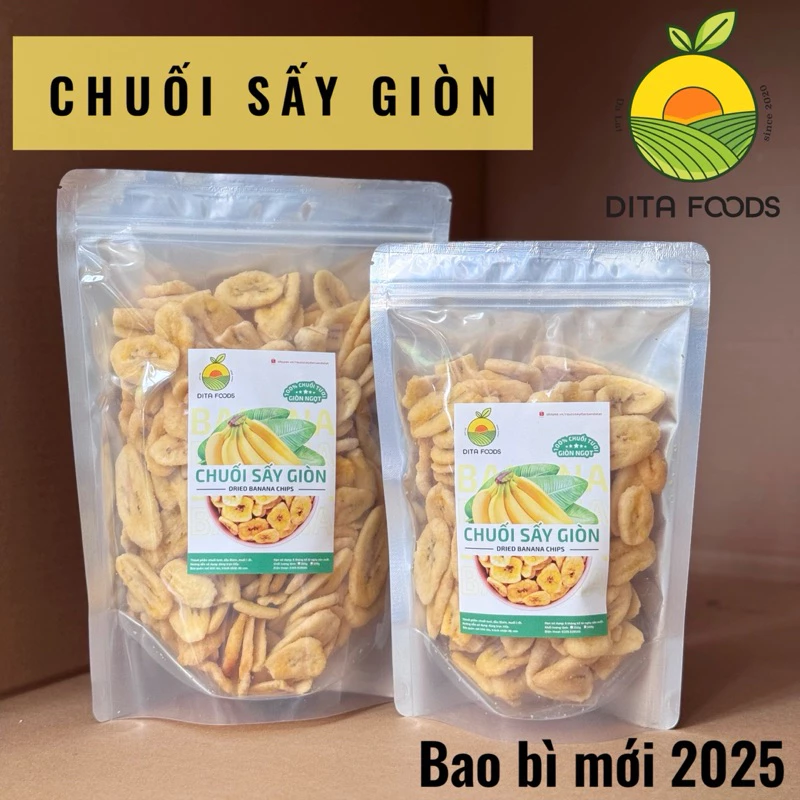 - Nguyên liệu chất lượng cao: Sản xuất từ chuối tươi Đà Lạt, không chứa chất bảo quản.