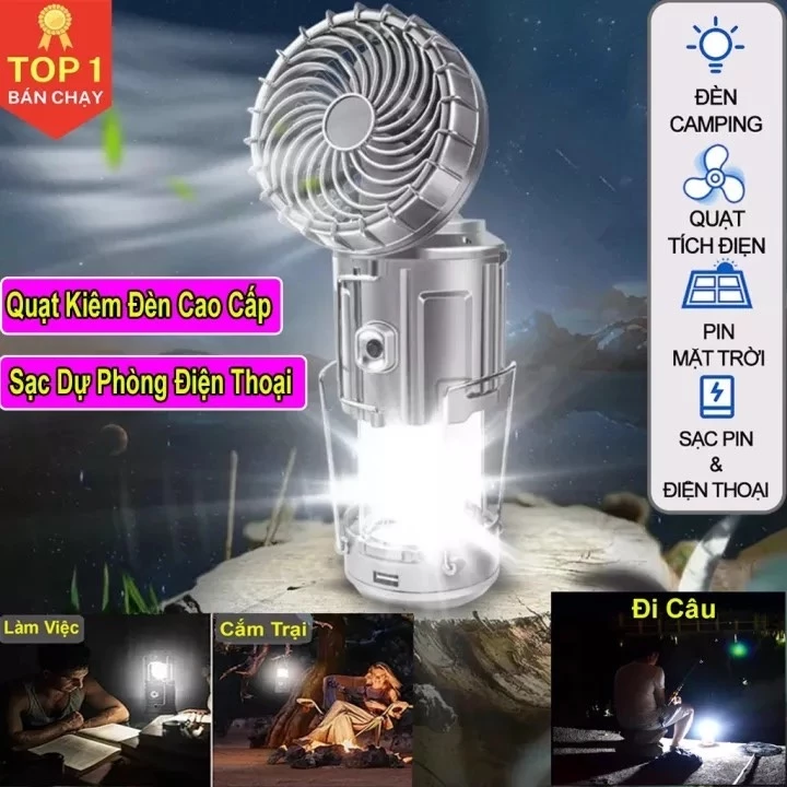Đánh Giá Sản Phẩm Đèn Bão, Đèn Pin Camping 3 in 1 Lượng Mặt Trời, Kèm Sạc Dự Phòng Có Quạt Du Lịch Đi Câu Cá Cắm Trại (DH)