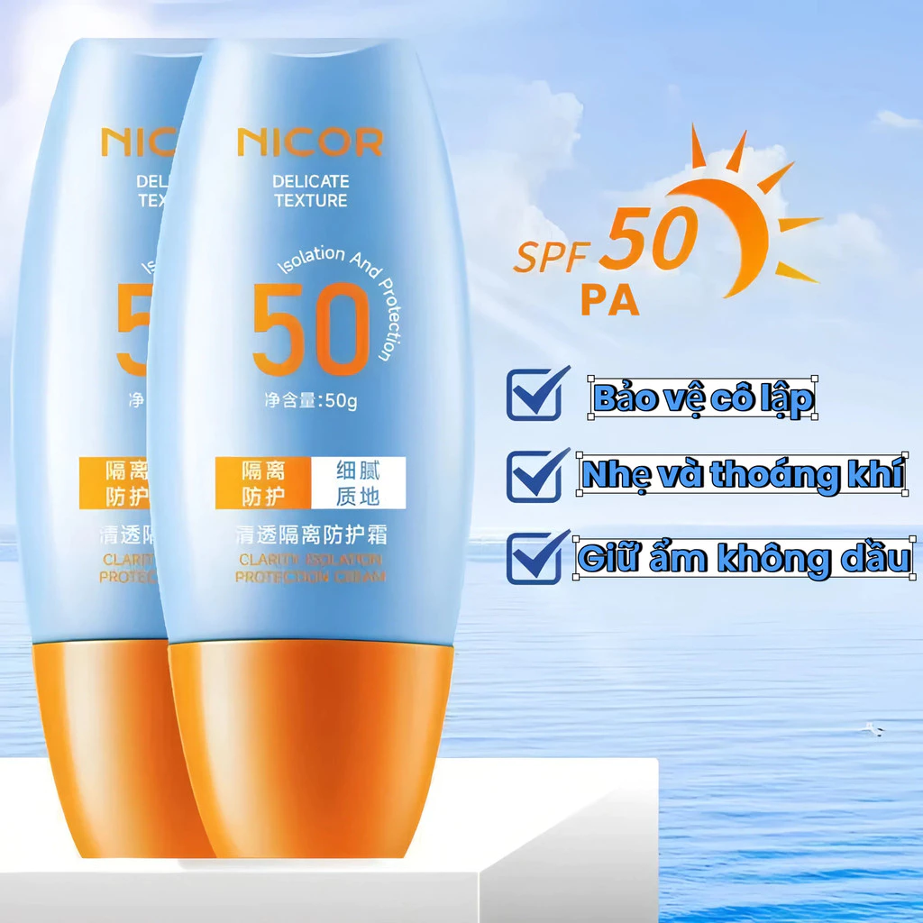 🔥 Kem chống nắng trắng da chống nước NICOR 50g bảo vệ da với SPF 50+ PA++++ đang giảm giá!
