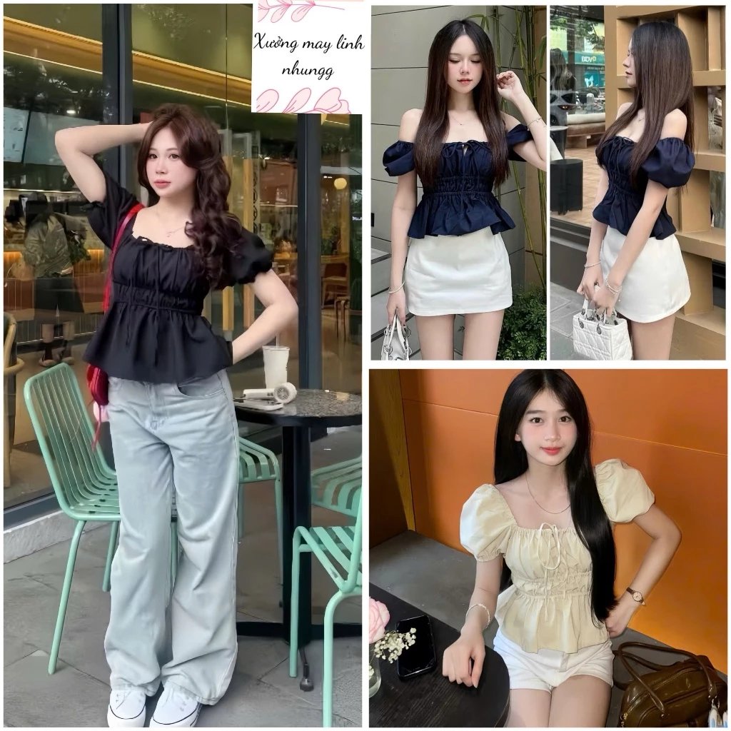 🔥 ÁO babydoll cổ vuông thắt nơ tay phồng phong cách coquette tiểu thư đang giảm giá!