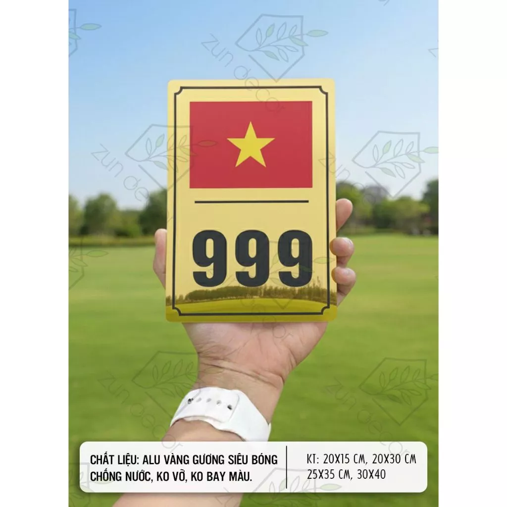 - Độ bền cao: Được làm từ chất liệu alu vàng gương, biển số nhà này có thể chống chọi được với tác động của thời tiết.