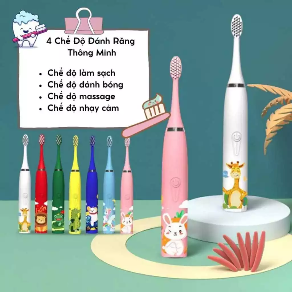 🔥 BÀN CHẢI ĐIỆN CHO BÉ (2-12 TUỔI) ĐÁNH SẠCH MẢNG BÁM TRÊN RĂNG- TẶNG KÈM 4 ĐẦU BÀN CHẢI THAY THẾ đang giảm giá!