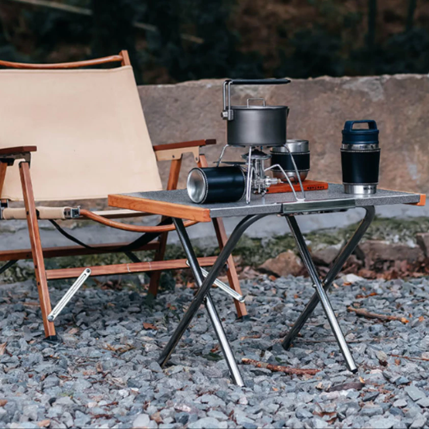 - Gỗ: Bàn gấp dã ngoại làm từ gỗ có độ bền cao, chống chịu tốt với thời tiết và tạo cảm giác ấm áp, gần gũi với thiên nhiên.