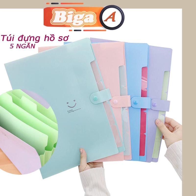 🔥 Cặp đựng tài liệu A4, Túi hồ sơ văn phòng BIGA 5 ngăn tiện dụng 6 màu SMILE Bìa nhựa chống nước đang giảm giá!