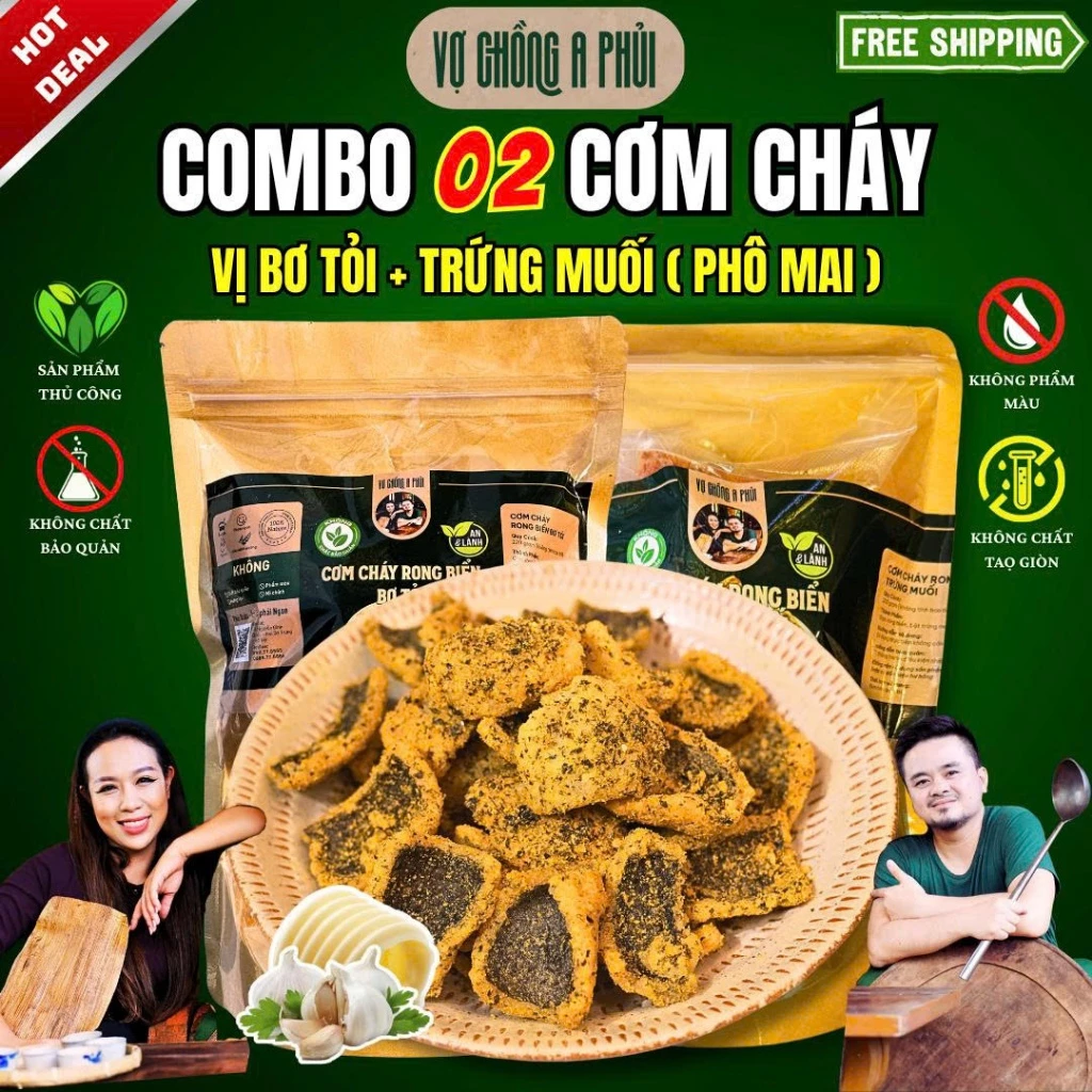 🔥 [Tặng Kẹp Thực Phẩm] Combo 2 Cơm Cháy Trăm Người Thích – Vị Bơ Tỏi Mix Với Vị Phô Mai Hoặc Trứng Muối 220g đang giảm giá!
