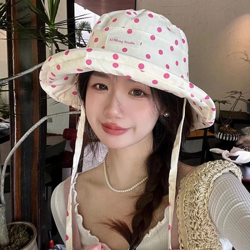 🔥 Mũ bucket, nón bucket nữ Hình Chấm Bi có vành kẽm phù hợp với du lịch, cà phê, đi chơi đang giảm giá!