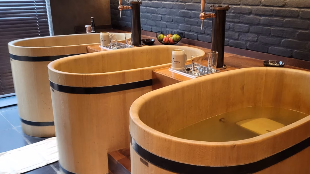 Một không gian rộng rãi 3,803 foot vuông với đầy đủ tiện nghi như phòng tắm hơi, máy bán hàng tự động bia địa phương, tủ lạnh bia, tủ lạnh và máy làm đá đang chờ đón khách hàng tại Hops and Harmony Spa, một spa bia mới sắp được khai trương tại Tipp City, Ohio. Chủ sở hữu David Smith cho biết rằng spa này sẽ cung cấp các buổi trị liệu kéo dài 90 phút trong bồn tắm ngâm với hoa bia, lúa mạch và nấm men bia, được cho là có tính chống oxy hóa, giải độc và trẻ hóa da.