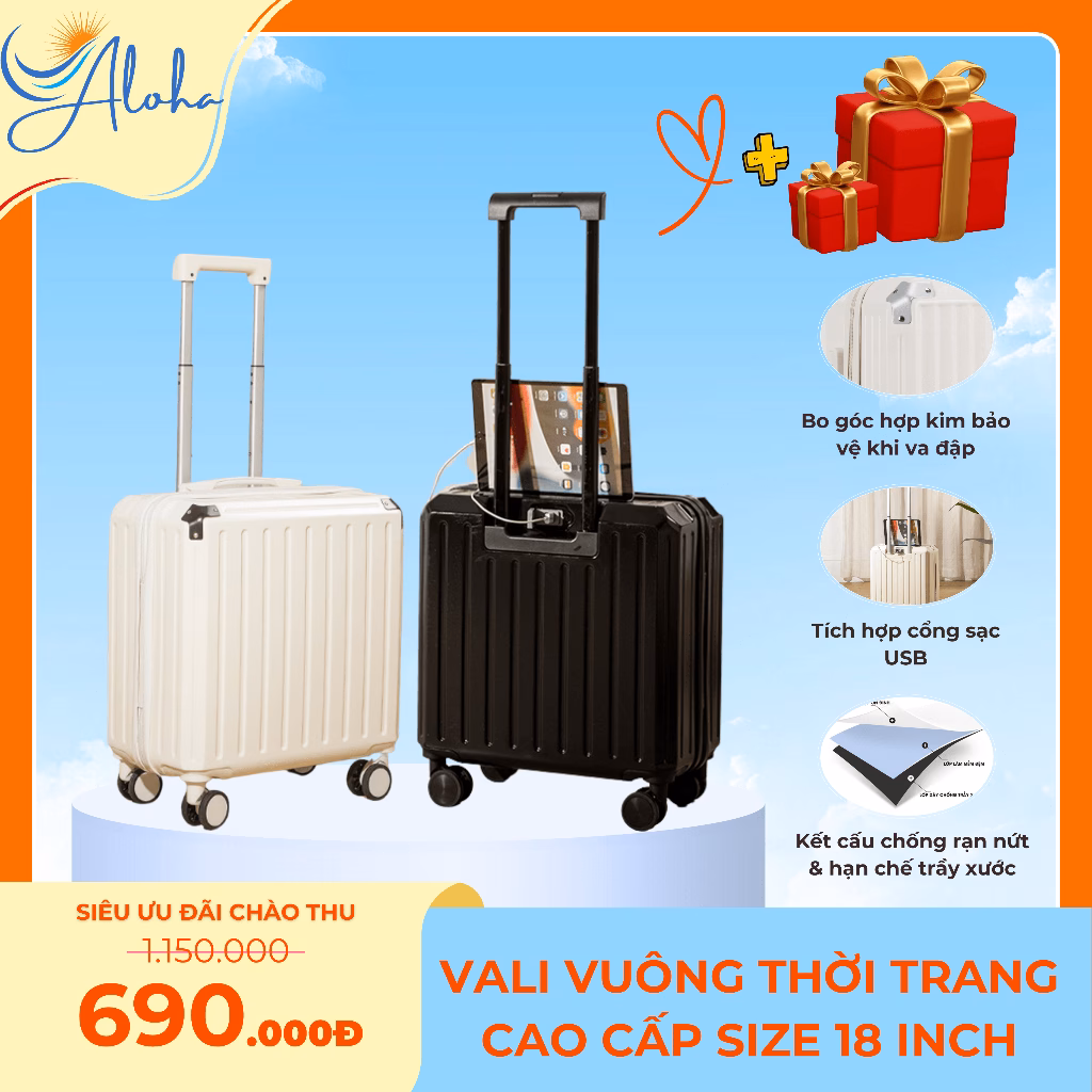 🔥 Vali Kéo Dáng Vuông Aloha Size 18 Inch Vali Xách Tay Cao Cấp Thời Trang Siêu Gọn Nhẹ Chống Va Đập đang giảm giá!