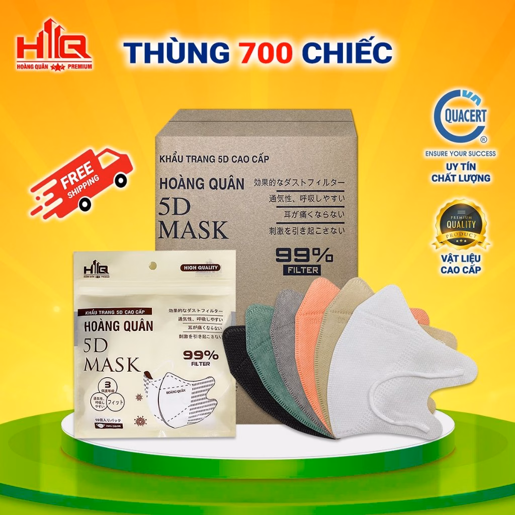 🔥 Khẩu Trang [ Thùng 700 Cái ] 5D Hoàng Quân Kháng Giọt , Bụi , Tia UV 3 Lớp Hàng Chính Hãng đang giảm giá!